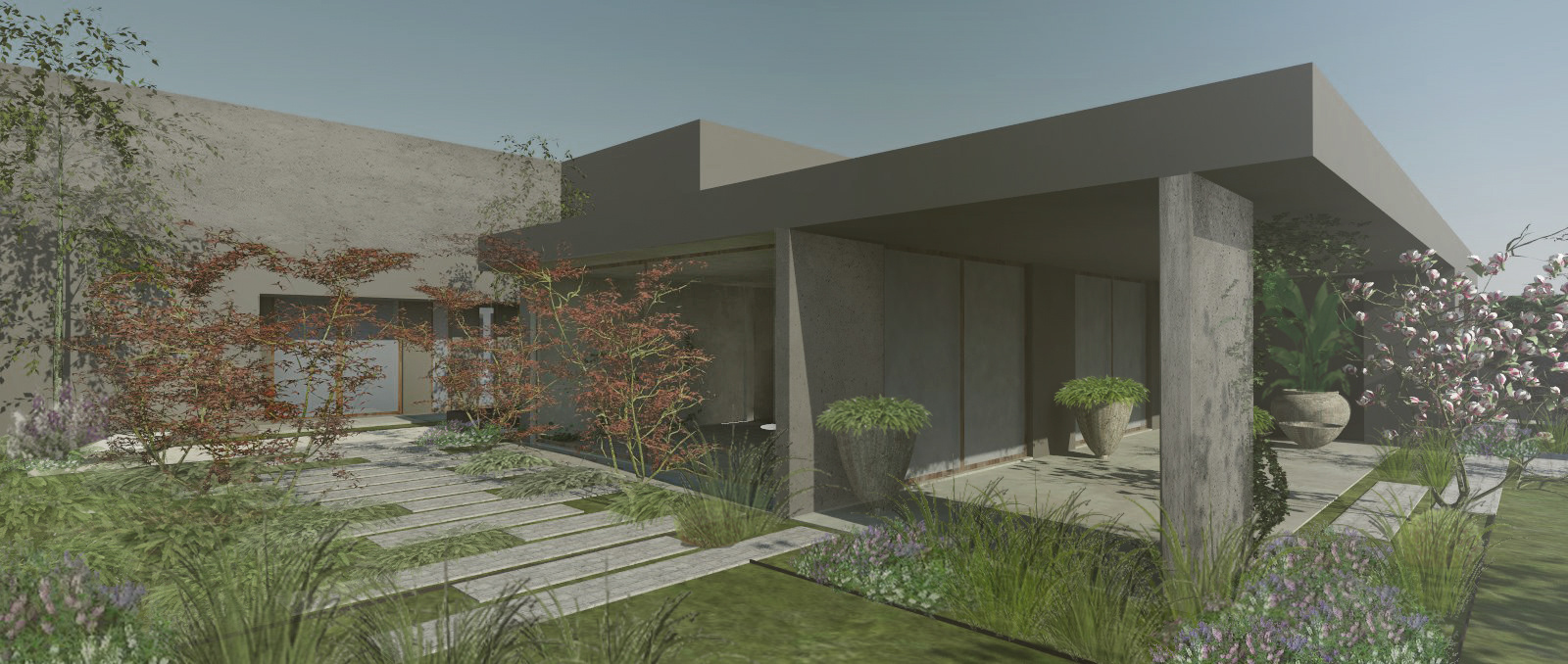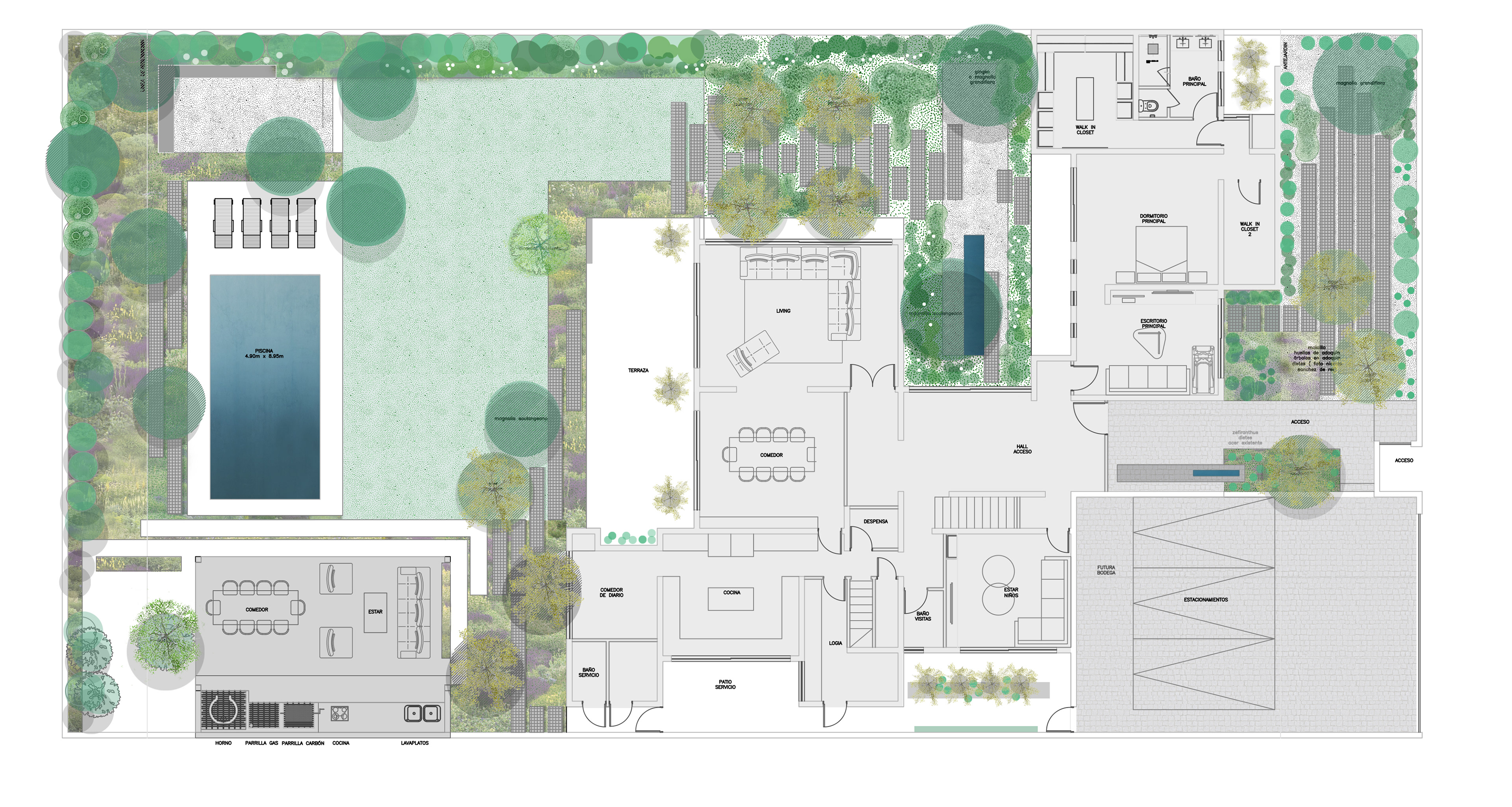 JARDÍN PASEO DEL AGUILA Superficie: 800 m2 Cliente: Particular Ubicación: Lo Barnechea, Santiago, Chile Año: 2020- En proceso